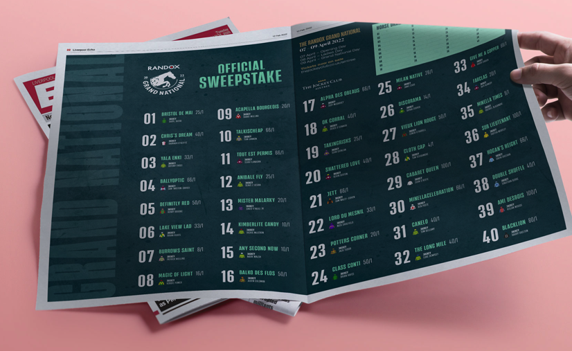 全國(guó)大賽由賽馬會(huì)在其位于利物浦的安特里賽馬場(chǎng)上演。由于大流行而在沒(méi)有人群的情況下進(jìn)行了兩年的比賽后,北京集團(tuán)品牌vi設(shè)計(jì)公司Thisaway 被要求創(chuàng)建一個(gè)標(biāo)志性品牌形象,以歡迎各行各業(yè)的賽馬愛(ài)好者重返這一標(biāo)志性賽事。