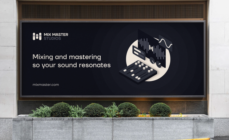 Mix Master 是一家音頻錄音后期制作工作室,專門從事混音和母帶制作。公司的技術(shù)性質(zhì)帶來了對精致和專注的vi設(shè)計的需求。這個焦點是通過使用醒目的視覺效果來創(chuàng)建的,這些視覺效果清楚地突出了聲音和工作室混音的作用。