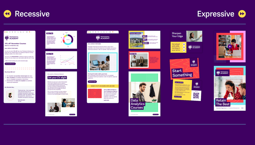 結(jié)果是與UCD Masterbrand 高度一致的表達(dá)。雖然仍然是 UCD 的一部分,但新的視覺和語言表達(dá)將 UCD 專業(yè)學(xué)院展示為一個挑戰(zhàn)其行業(yè)并直接滿足其專業(yè)目標(biāo)市場需求的品牌。