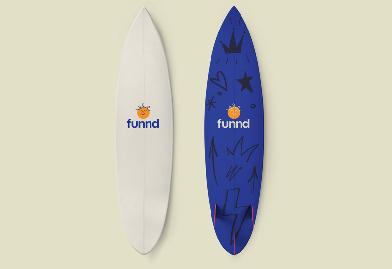 當我們得知Funnd 的創(chuàng)始人是一個熱衷于沖浪的人時,我們甚至設(shè)計了一個沖浪板來展示在 Funnd 總部。