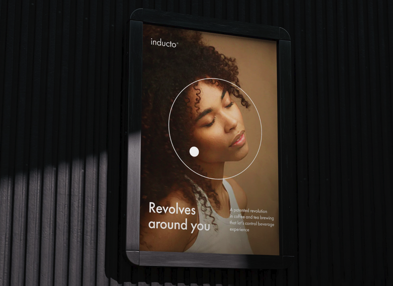 該標(biāo)識的靈感來自于產(chǎn)品部件中呈現(xiàn)的圓圈形式,如溫度調(diào)節(jié)和感應(yīng)加熱器。所有這些都是為人們的需要服務(wù)的。這就是為什么我們選擇“Revolves around you”作為廣告語和創(chuàng)意概念?;諛?biāo)的靈感來自 Dieter Rams 的 Braun 時代。所選擇的顏色與品牌價值相關(guān):創(chuàng)新、簡約、自由思考和誠實。
