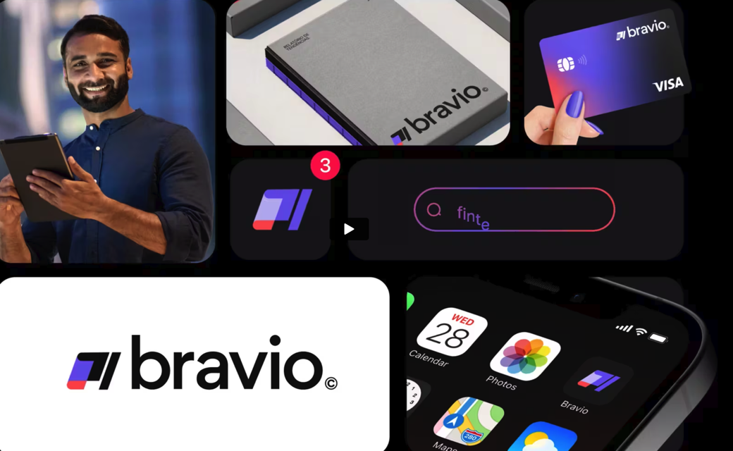 紫色代表Bravio的創(chuàng)造力和未來愿景,橙色象征著其致力于為客戶服務的活力和熱情,而黑色則給出了金融領域所需的嚴肅和堅實的基調。
