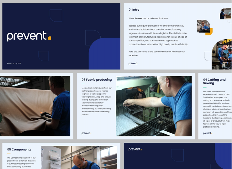 演示文稿和模板:一致性和專業(yè)性——開發(fā)新的演示文稿模板是為了保持一致和專業(yè)的品牌形象。這些模板采用了新的字體、調(diào)色板和點圖案,確保 Prevent 的每一次溝通都反映了重新構(gòu)想的品牌形象。